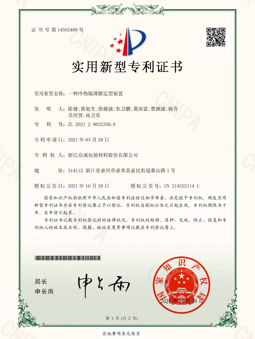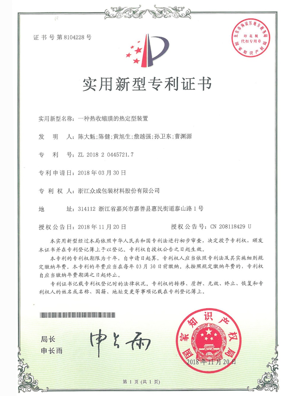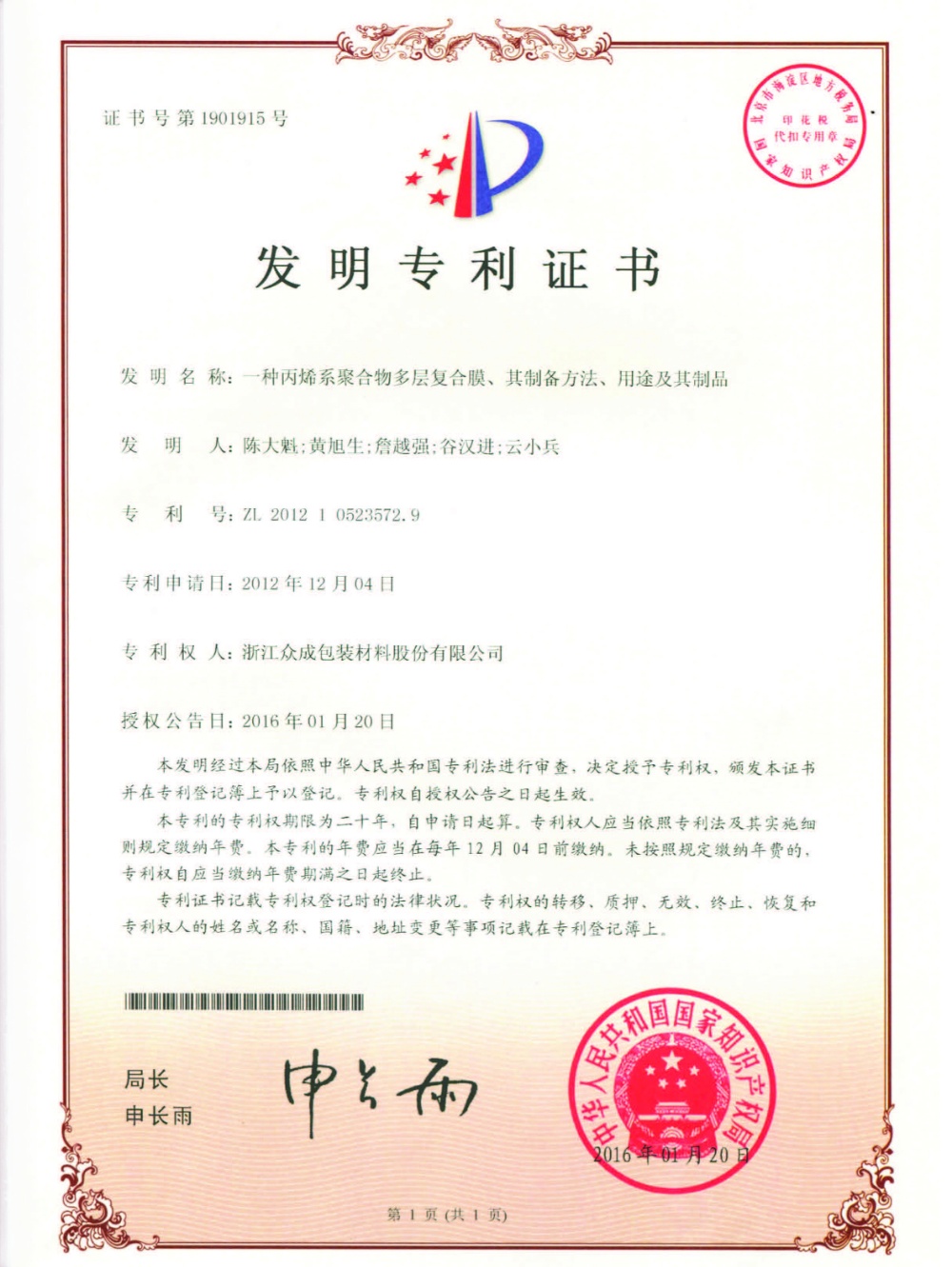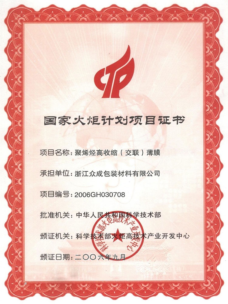 公司秉承“贏在領(lǐng)先”的企業(yè)精神,堅(jiān)持核心設(shè)備自制,不斷在新產(chǎn)品、新工藝上取得創(chuàng)新,已累計(jì)獲得知識產(chǎn)權(quán) 48 項(xiàng),其中發(fā)明專利 21 項(xiàng)。先后開發(fā)了 POF 普通膜和POF交聯(lián)膜,并在此基礎(chǔ)上進(jìn)一步研發(fā)了聚烯烴高性能(低溫)熱收縮薄膜、聚烯烴高收縮(交聯(lián))薄膜、包裝用超低收縮力熱收縮膜、包裝用聚烯烴超薄熱收縮薄膜等產(chǎn)業(yè)化新產(chǎn)品,多次承擔(dān)火炬計(jì)劃項(xiàng)目,獲得浙江省科學(xué)技術(shù)進(jìn)步獎(jiǎng)三等獎(jiǎng)4次、嘉興市科學(xué)技術(shù)獎(jiǎng)一、三等獎(jiǎng)各1次,嘉善縣科學(xué)技術(shù)進(jìn)步獎(jiǎng)一等獎(jiǎng)2次。